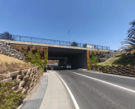 Durante un mes de trabajo ininterrumpido, Ayagaures Medioambiente ha llevado a cabo un ambicioso proyecto de jardinería vertical en una de las zonas verdes de la GC-1, en las inmediaciones del aeropuerto.